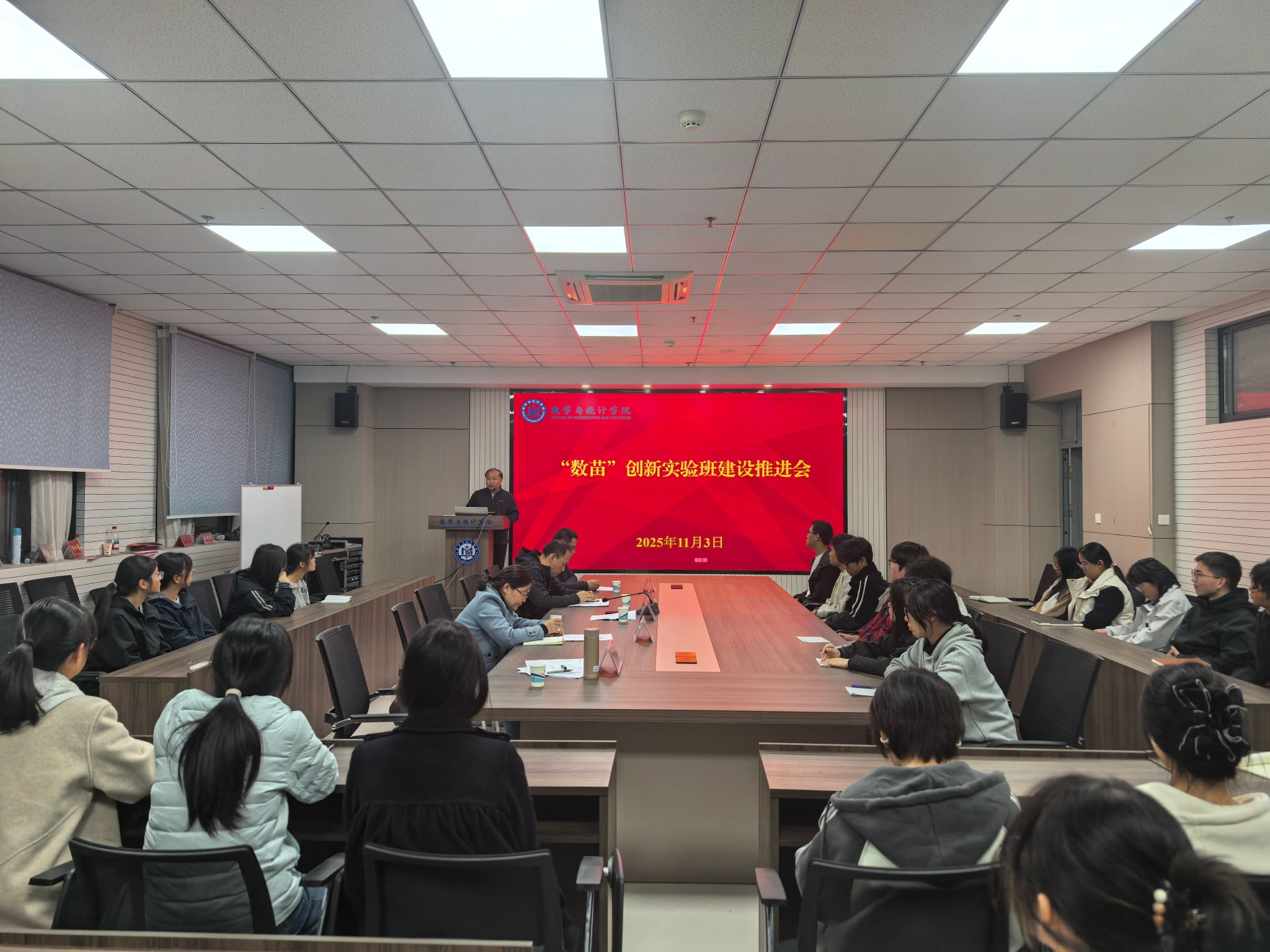 在惟德楼315会议室召开“数苗”创新实验班建设推进会。学院院长谷存昌、党委副书记程凯、副院长曹建莉和肖留超、实验班班主任郭辉及全体实验班学生参加会议。会议由程凯主持。