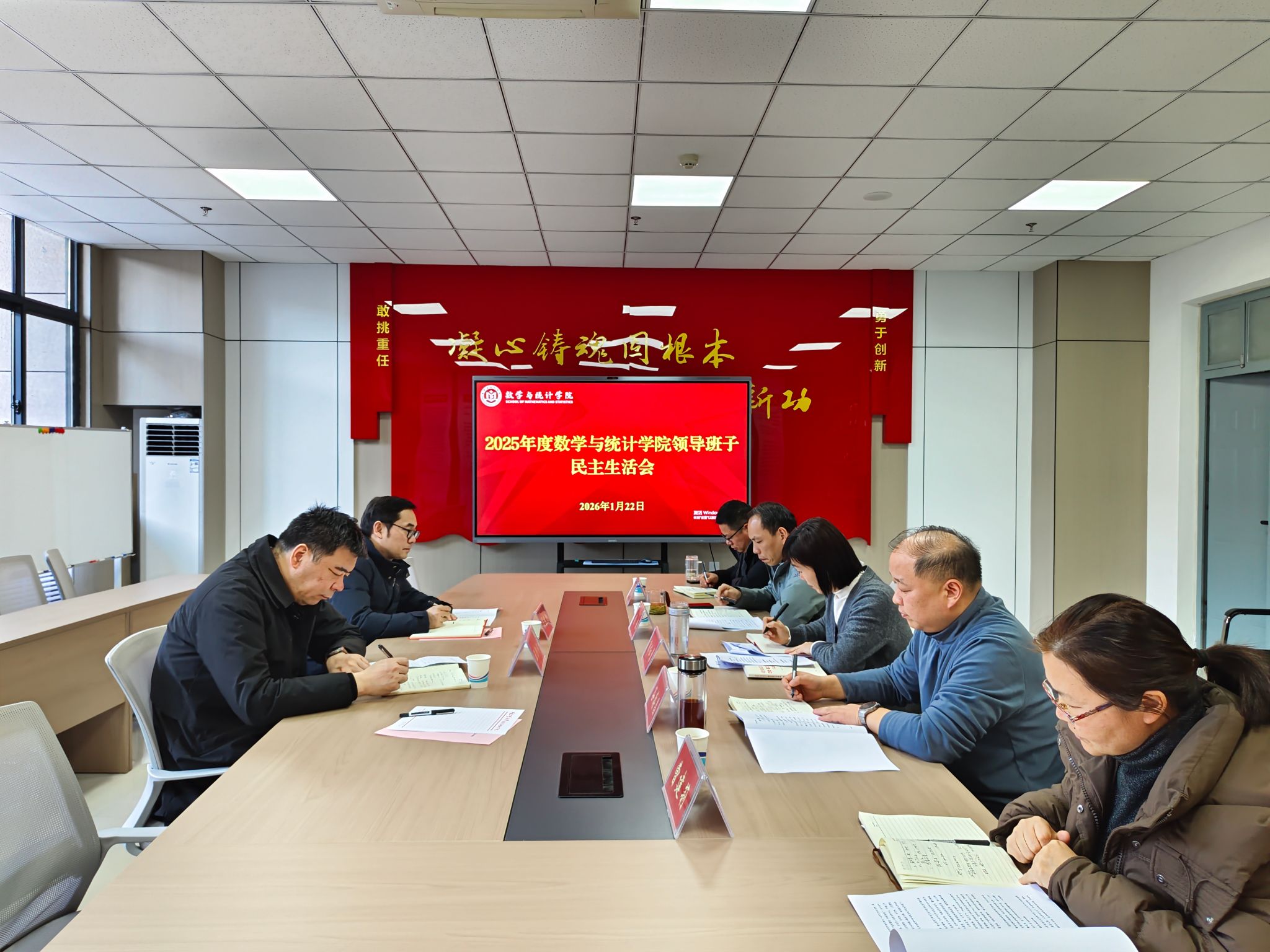 郭红彦首先代表班子汇报了学院2025年度深入贯彻中央八项规定精神学习教育整改落实情况和2024年度民主生活查摆问题整改情况。随后,她代表学院班子作了对照检查,重点从五个方面查摆问题和不足,并结合典型案例,深刻剖析原因,提出整改措施。随后,郭红彦、谷存昌、程凯、曹建莉分别围绕此次民主生活会主题,紧密结合个人思想、学习和工作实际分别进行了检视剖析,开展了批评与自我批评。