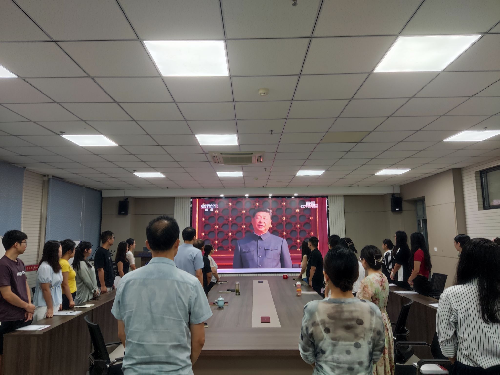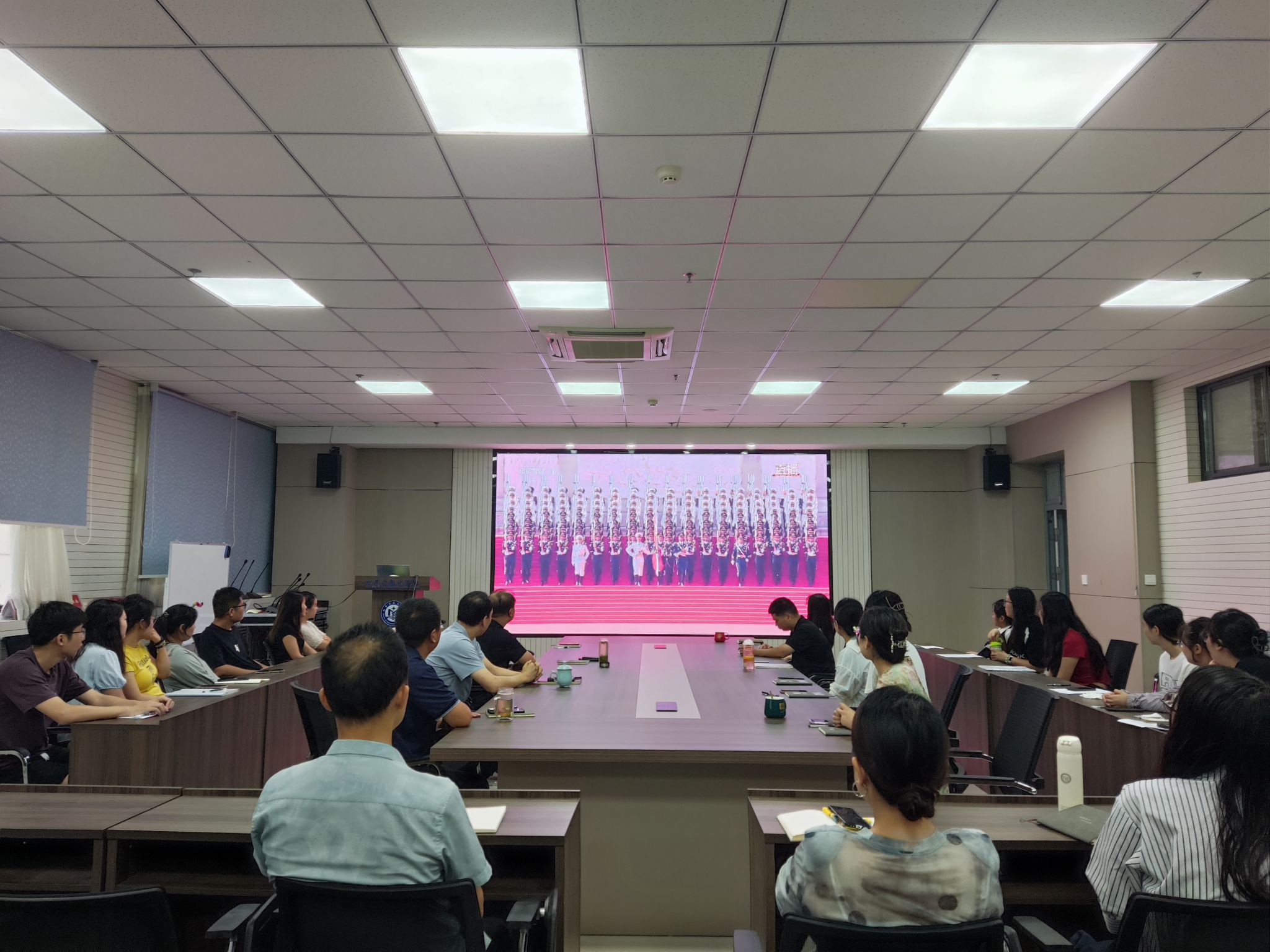 领导班子、全体行政人员及研究生齐聚惟德楼315会议室,集中观看了纪念中国人民抗日战争暨世界反法西斯战争胜利80周年阅兵实况直播。
