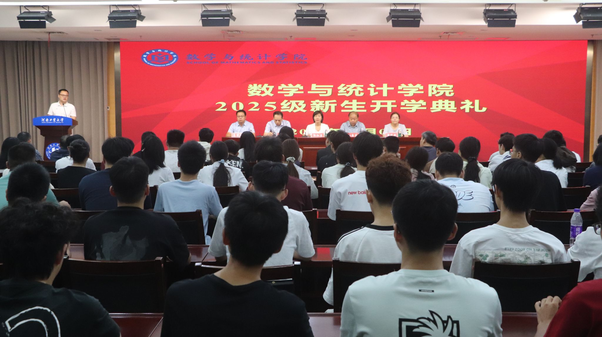 院长谷存昌代表学院全体师生对2025级新生表示衷心的祝贺和诚挚的欢迎,他向全体同学全面地介绍了河南工业大学、数学统计学院的发展历程和办学情况。他希望同学们要做好从高中到大学的学习方式的转变,从"跟着走"到"自己闯"、从"算得准"到"想得深"、从"单兵战"到"集团军"、从"纸上兵"到"实战将",尽快适应并融入大学的学习生活。他对同学们提出五点建议,第一,要树立远大理想,明确学习目标;第二,要培养从"被动"到"主动"的学习习惯;第三,要夯实专业基础,培养创新能力;第四,要树立从"学业"到"事业"的长远眼光;第五,要保持健康身心,塑造健全人格。