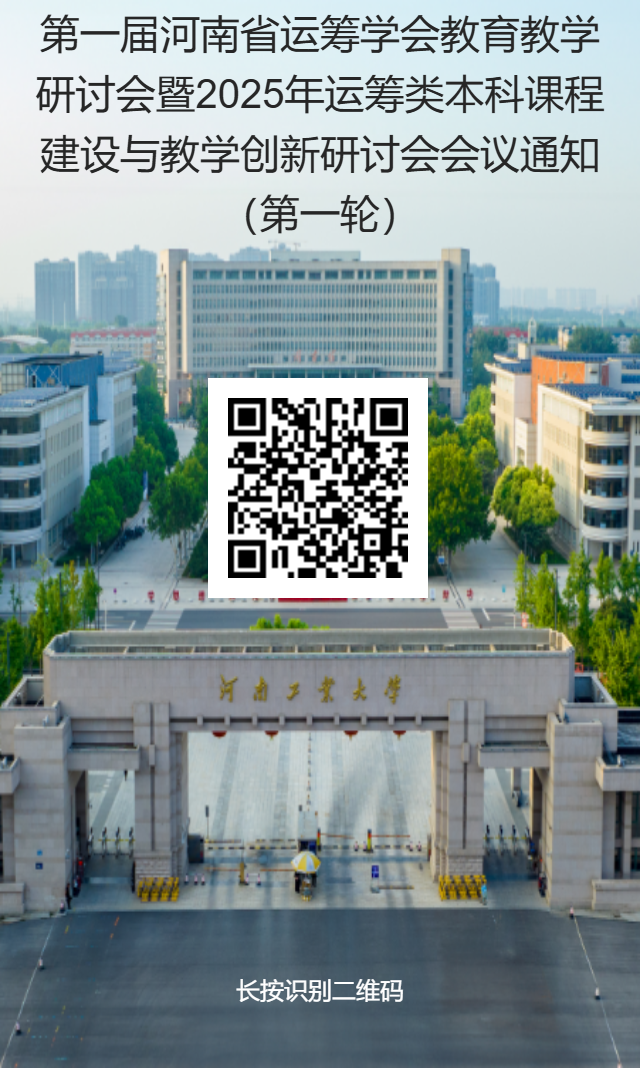 为全面贯彻落实2025年全国高等教育高质量发展会议的重要部署,深入践行习近平总书记关于教育的重要论述,积极顺应新时代教育转型与学科交叉融合的发展,深度挖掘运筹学类一流本科课程在提升学生数学思维、创新能力和应用实践水平等方面的潜在价值,加强高校之间的交流,兹定于2025年召开“第一届河南省运筹学会教育教学研讨会暨2025年运筹类本科课程建设与教学创新研讨会”。大会组委会诚挚地邀请全省乃至全国运筹学、数学及相近学科的各位同仁踊跃参加。