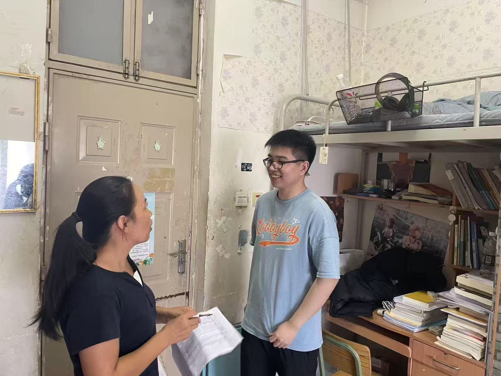 走访过程中,老师们细致询问了同学们的假期学习与社会实践体会,逐一核对学生返校情况,并叮嘱大家积极做好新学期的学业规划,保持整洁有序的宿舍环境。每一次叩门、每一句问候,都传递出学院深切的关怀与责任。走访结束后,老师们还专门联系暂未返校的学生,确认其个人情况与安全状况,确保不漏一人、不忘一处。