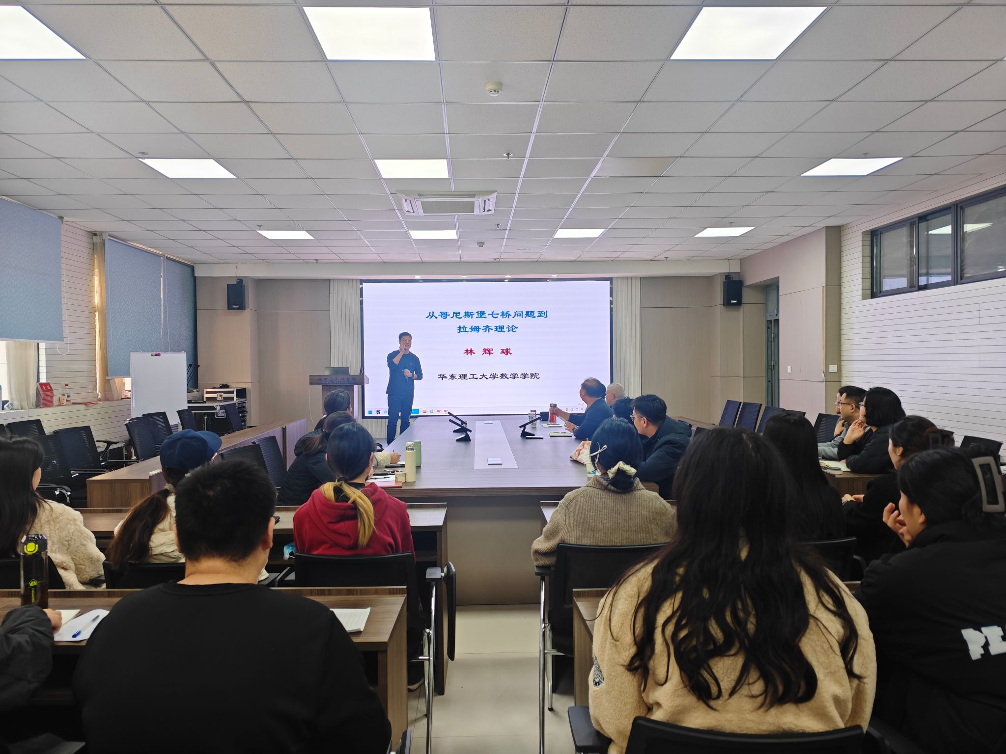邀请,河南工业大学数学与应用数学专业2007届毕业生、现华东理工大学博士生导师、数学学院院长、上海市东方学者特聘教授林辉球应邀在惟德楼315会议室作了题为“从哥尼斯堡七桥问题到拉姆齐理论”的学术报告。院长谷存昌、副院长曹建莉、学院科研创新培育团队、青年骨干教师和全体研究生参会,报告会由谷存昌主持。
